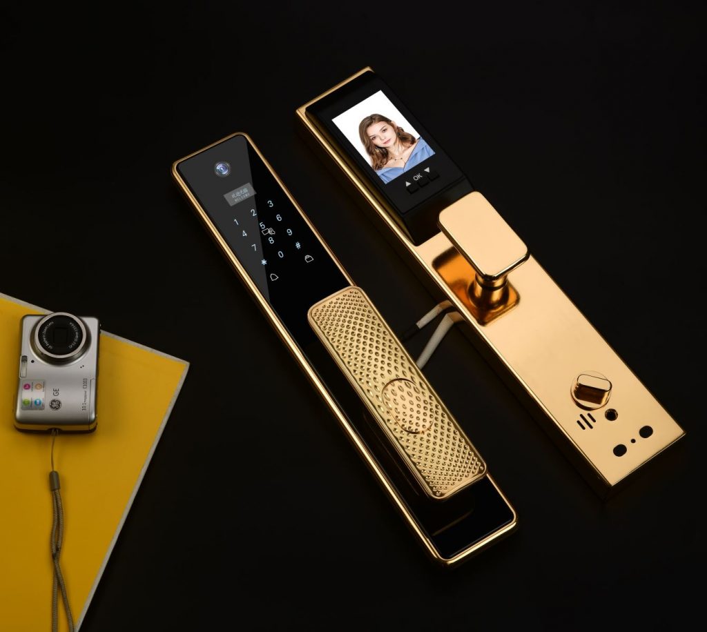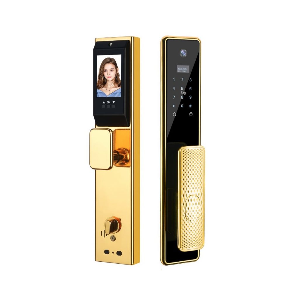 Khóa cửa vân tay Hubert HB CG99 Gold 24k nhập khẩu chính hãng được trang bị công nghệ hiện đại với tính năng mở cửa bằng vân tay, mật mã, thẻ từ, chìa cơ chống sao chép, đặc biệt APP WIFI mở cửa từ xa, Face ID nhận diện khuôn mặt chất lượng cao chính hãng tại Kitchen Store.